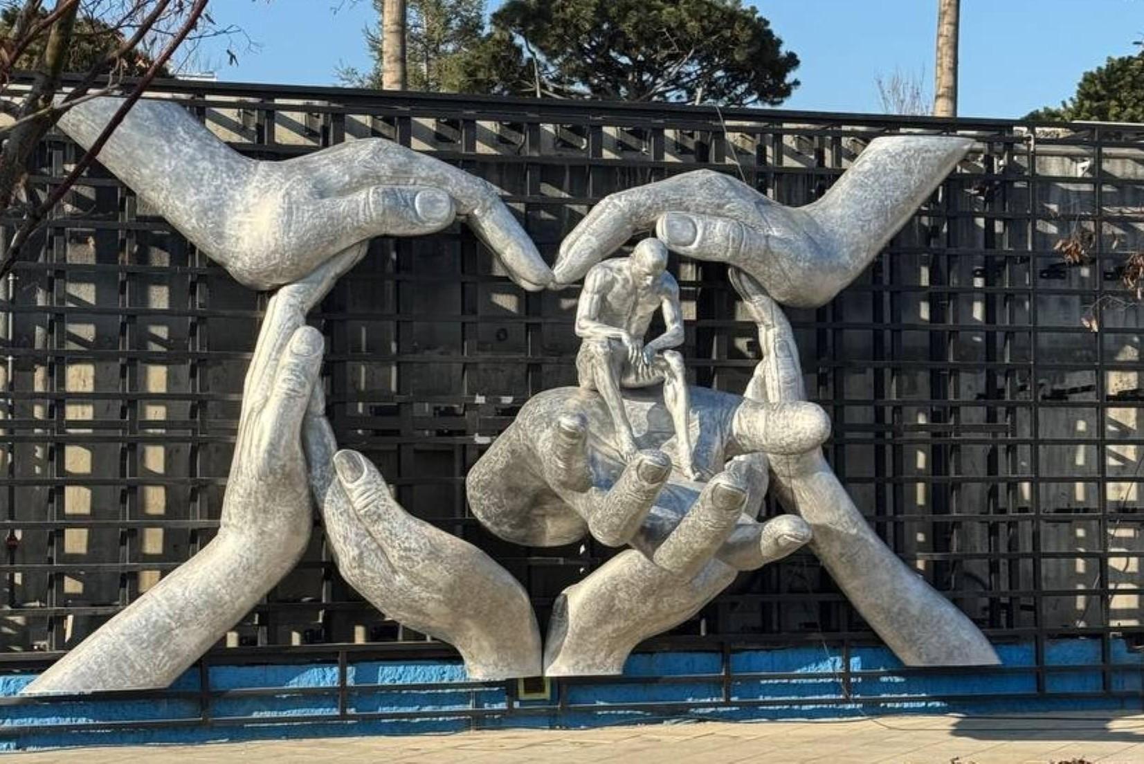 В парке «Краснодар» появился новый арт-объект. Он заставляет задуматьсяСкульптура выглядит как множество ладоней с человеком внутри