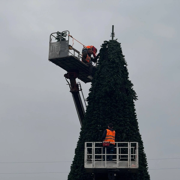 На улице Красной, которую украшает Галицкий, установили новогодние елки