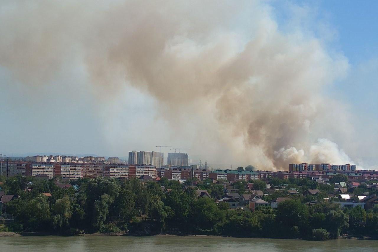 Что горит? Краснодарцы увидели огромные столбы белого дымаСильный пожар заметен из разных районов города