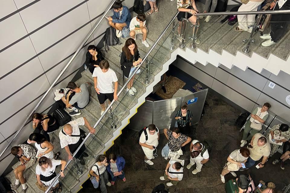Застрявшим в аэропорту Сочи пассажирам выдают коврики для «комфорта»Кресел для всех не хватает
